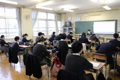 『相似な図形の面積』の学習です。英語と同様、2つのクラスに分かれて学習しています。