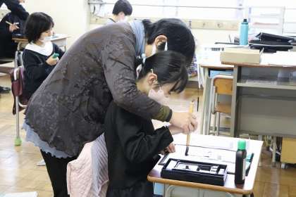 講師の先生による書き初め指導です。本日からスタートです。