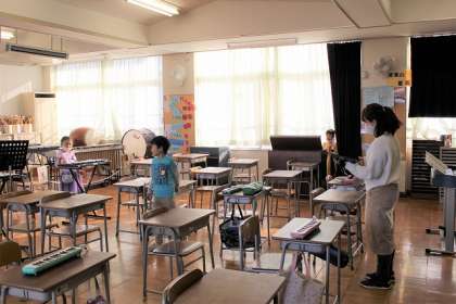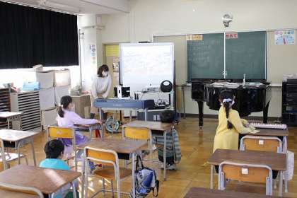 合奏『子犬のマーチ』3回演奏し録音しました。映像を見ています。自分の音が聞こえたかな?