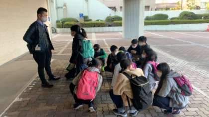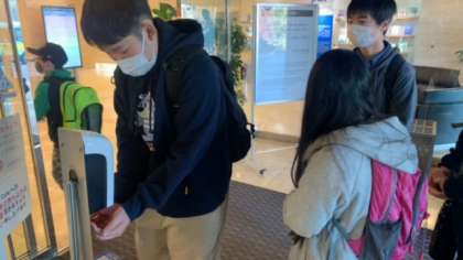 JICA地球ひろばに到着しました。手指消毒をしっかり行なって入館します。