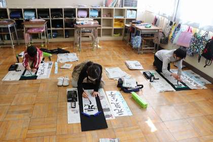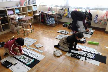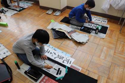 講師の先生による書き初め指導です。よろしくお願いいたします。