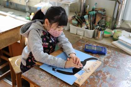 「はじめての木版画」彫刻刀の使い方がうまくなっています。