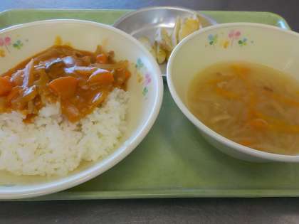 本日の献立:ハヤシライス、オニオンスープ、ベイクドポテト