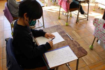 書き初め(硬筆)の時間です。