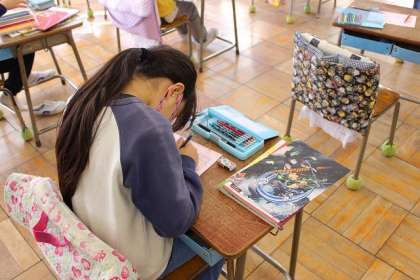 中学部2年生の読み聞かせありがとう!お礼の手紙を書いています。