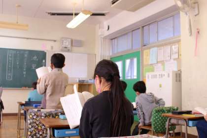 「かさこじぞう」音読リレーです。繰り返し読んでいきます。