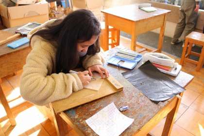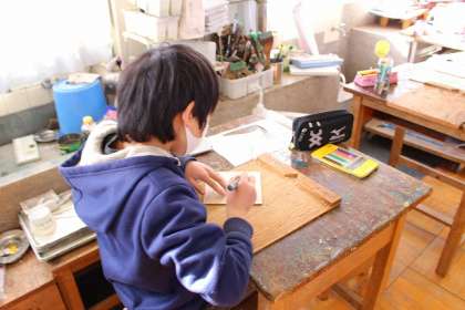「版から広がる世界」掘り進み回転版画の仕組みを利用して、デザインを作っていきます。