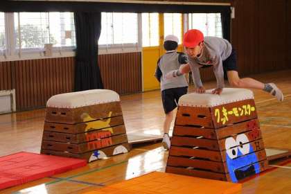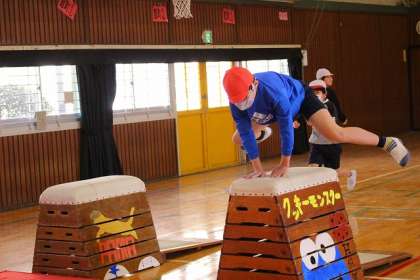 とび箱にチャレンジ!自分でとび箱を選んで跳んでいます。