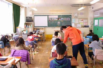 「火事から人びとを守る」避難訓練(職員室から出火)の後で行いました。