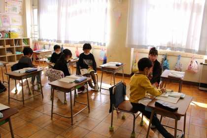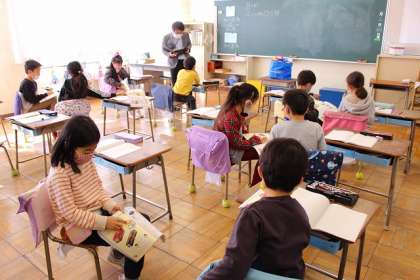 「はこの 形」の学習です。いろいろな箱の形について、気付いたことを発表しています。