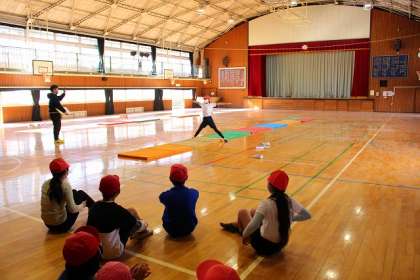 マット運動 連続技に挑戦です。ピシッと決めポーズ。