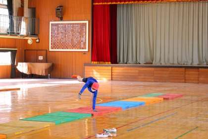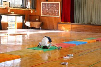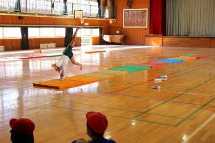 マット運動 連続技に挑戦です。技の一つ一つを丁寧に!
