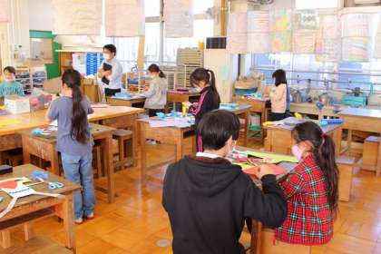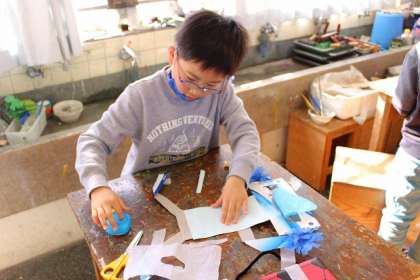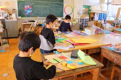 「おどるティッシュリン」ティッシュリンの服や飾りつけをしています。手から足の部分へと・・