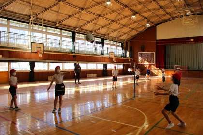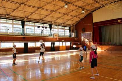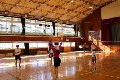 「ソフトバレーボール」パス・トス・スパイクといった流れで練習しています。