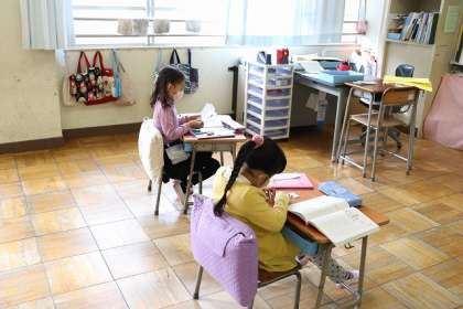 「もうすぐ2年生」新しい1年生に学校を案内するポスターを作るため、メモ作りをしています。