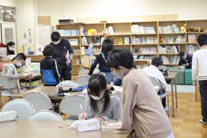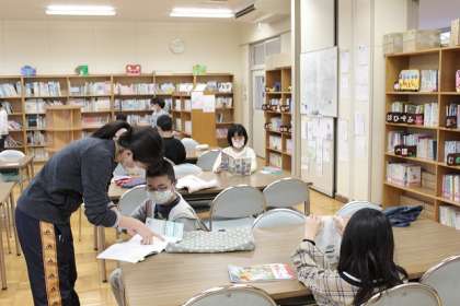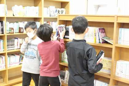 図書の時間です。本を探している間に、本棚の整理までしてくれています。