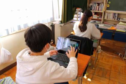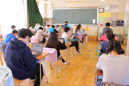 新しいパソコンで「Google Classroom」の使い方を練習しています。