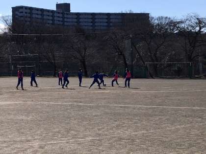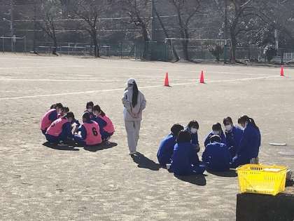チームで作戦を立てて、サッカーのゲームを行っています。