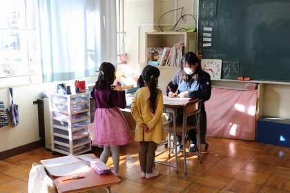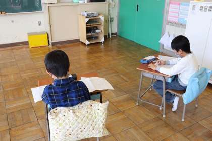 「おもい出のアルバム」作文の下書き完成に向けてがんばっています。