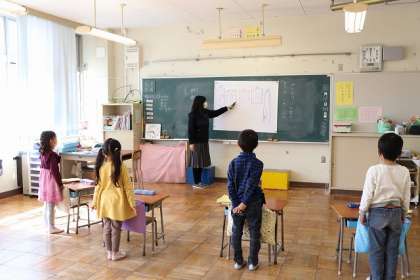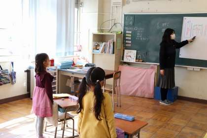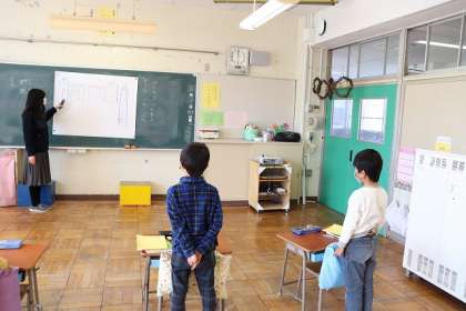 音読「まっすぐについて」役割読みをしています。大きな声ではっきりとした声で、音読できました。