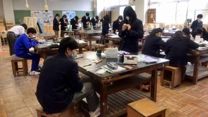 手回しラジオができた生徒は、LEDのミニライトの作成をしています。