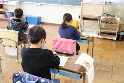 「アレクサンダとぜんまいねずみ」自分の考えをノートに書いています。