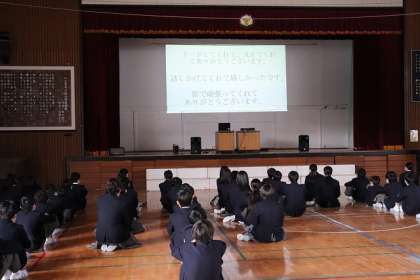 1年間の活動お疲れさまでした。生徒会企画「3年生卒業に向けて」スライド上映がありました。