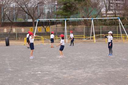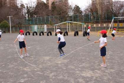 なわとびをしています。歌が聞こえてきました。「ゆうびんやさんおとしもの・・」