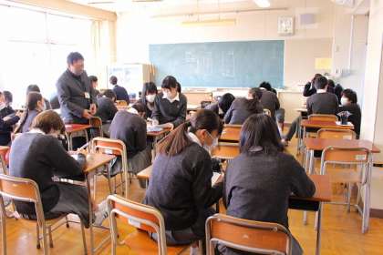 ペアになり自己紹介文のアドバイスをもらっている生徒もいます。