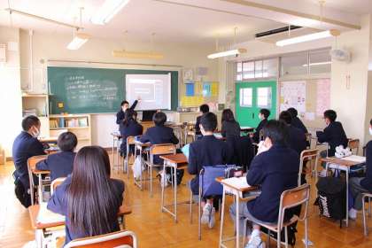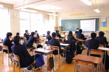 にぎやかな笑い声に誘われて教室へ。ゲーム性を取り入れた活気のある授業です。