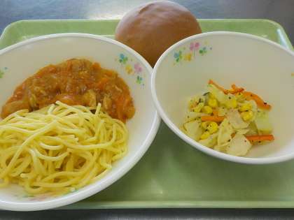 本日の献立:ミルクパン、カチャトーラ、ペペロンチーノ、イタリアンサラダ