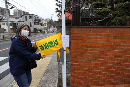地域の方と一緒に横断旗の取り付けを行いました。場所は北野街道沿いです。ありがとうございました。