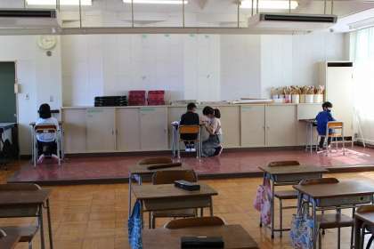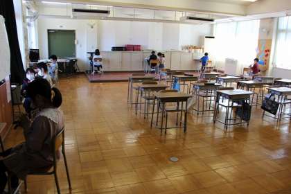 リコーダー練習(少人数で距離を置くために)2グループに分かれて活動しています。