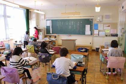 教室グループは、「強く心に残ったこと」の清書をしています。