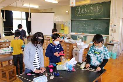 「おもちゃランド」おもちゃ作りを通して、これまでに学習したことを深めていきます。