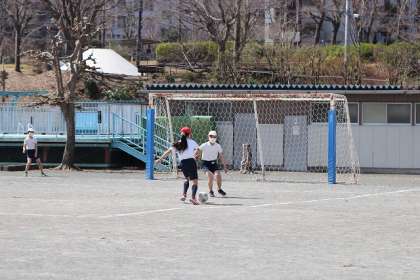 校庭でボールゲームをしています。