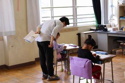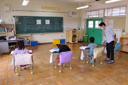 「時こくと 時間」午前・午後の区別、正午の意味、1日は24時間であることを学習しています。