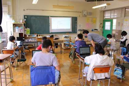 児童用Chromebook端末を活用して「調べ学習」をしています。