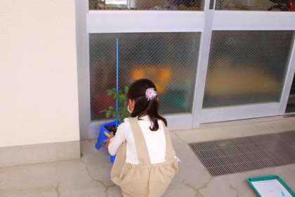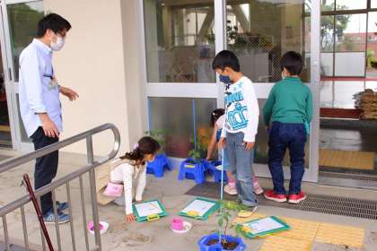「大きくなあれ わたしの野さい」ミニトマトの苗を観察しました。