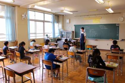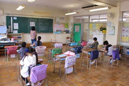 2つのクラスに分かれて「たし算とひき算の筆算」の学習をしています。