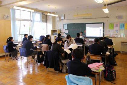 プロジェクターを使用して解説しています。