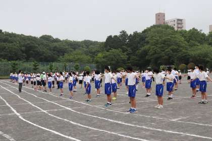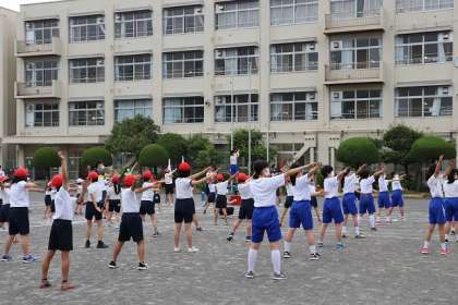 ラジオ体操の位置を確認した後、練習開始です。