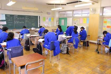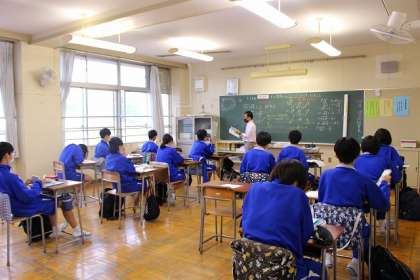2つのクラスに分かれて「平方根の大小」の学習をしています。