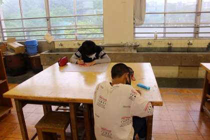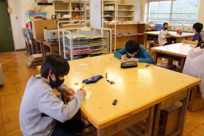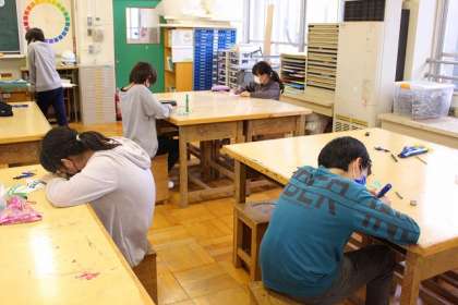 「切り絵」大きなコースターデザインを考え、カッターで切っていきます。
