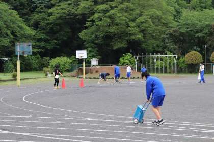 1校時の小中合同練習のための準備をしてくれています。ご苦労様。