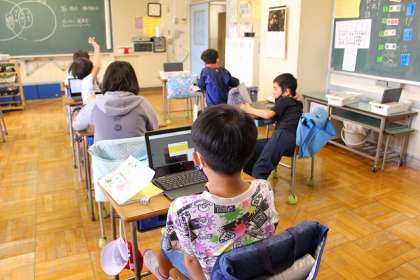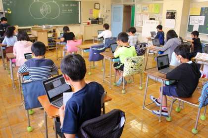 タブレット学習端末を使って「ゴーヤ」の調べ学習をしています。