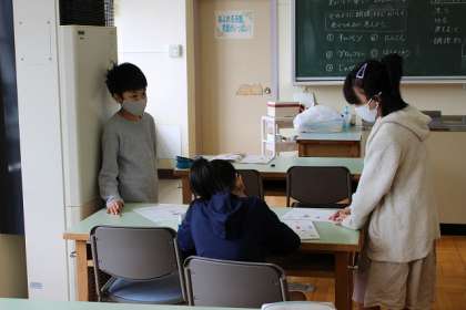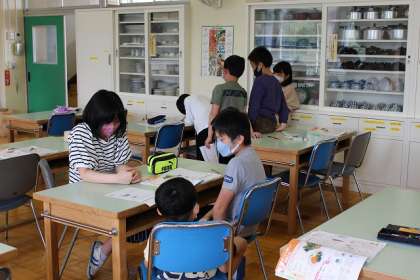 「おいしい楽しい調理の力」ゆでる料理にはどんなものがあるか、ゆでるとどんな変化があるか、話し合っています。
