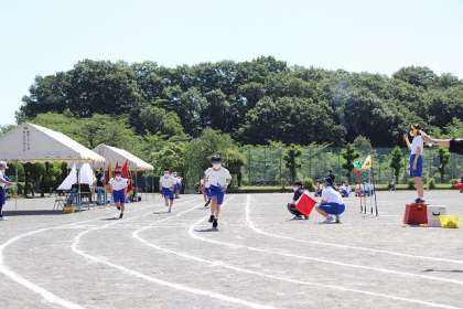 中学部男子による全員リレーです。