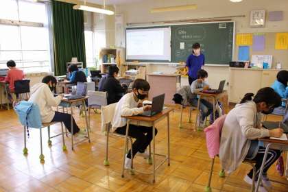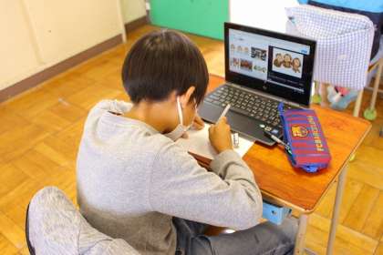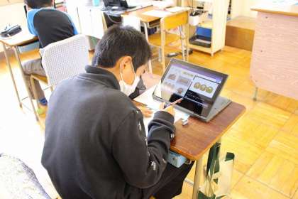タブレット学習端末を使っています。集中して取り組んでいます。