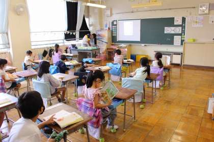 1時間めのスタートです。教科書の文章を読んだ後は、ノートに書いていきます。